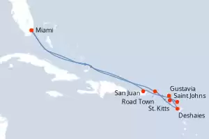 Reiseroute : Miami, San Juan, Saint Johns, St. Kitts, Gustavia, Deshaies, Road Town, Miami, San Juan, Saint Johns, St. Kitts, Gustavia, Deshaies, Road Town, Miami