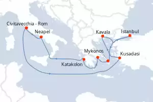 Reiseroute : Civitavecchia - Rom, Kusadasi, Kavala, Istanbul, Mykonos, Piräus - Athen, Katakolon, Neapel, Civitavecchia - Rom