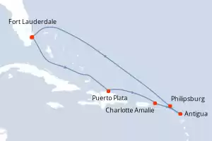 Reiseroute : Fort Lauderdale, Puerto Plata, Charlotte Amalie, Antigua, Philipsburg, Fort Lauderdale