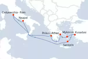 Reiseroute : Civitavecchia - Rom, Santorin, Kusadasi, Mykonos, Piräus - Athen, Katakolon, Neapel, Civitavecchia - Rom