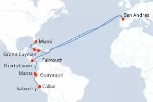 Reiseroute : Miami, Grand Cayman, Falmouth, San Andrés, Puerto Limon, Manta, Guayaquil, Salaverry, Callao