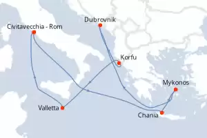 Reiseroute : Civitavecchia - Rom, Chania, Mykonos, Dubrovnik, Korfu, Valletta, Civitavecchia - Rom