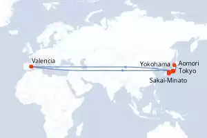 Reiseroute : Valencia, Tokyo, Yokohama, Tokyo, Aomori, Sakai-Minato, Busan, Kochi, Tokushima, Osaka, Shimizu, Tokyo, Yokohama, Tokyo, Valencia