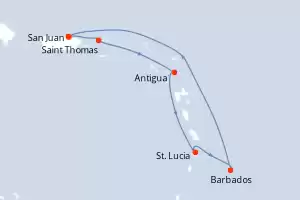 Reiseroute : San Juan, Saint Thomas, Saint martin, Antigua, St. Lucia, Barbados, San Juan