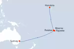 Reiseroute : Sydney, Datumsgrenze, Papeete, Moorea, Raiatea, Honolulu