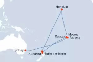Reiseroute : Sydney, Bucht der Inseln, Datumsgrenze, Raiatea, Papeete, Moorea, Honolulu
