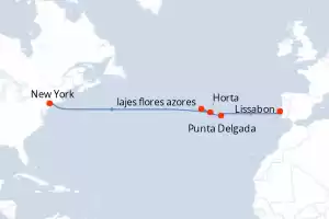 Reiseroute : Lissabon, Punta Delgada, lajes flores azores, Bayonne (New Jersey), Lissabon, Punta Delgada, lajes flores azores, Bayonne (New Jersey)