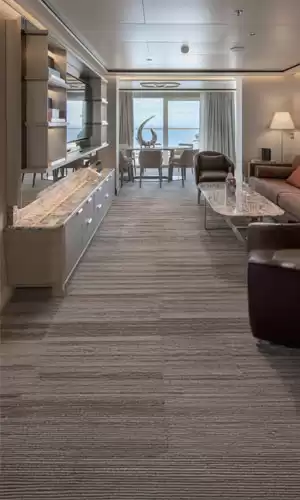 Die Vista-, Panorama-, Classic Veranda-, Superior Veranda- und Deluxe Veranda-Suiten bieten eine Fläche von 31 bis 36 m². Die Silver Suite misst 73 m², die Owner’s Suite 88/98 m², die Royal Suite 105 m² und die Grand Suite 137/146 m². Die größten Suiten lassen sich mit anderen Suiten kombinieren, um zusätzlichen Platz zu schaffen.