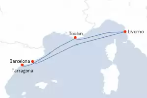 Reiseroute : Tarragona, Toulon, Livorno, Barcelona