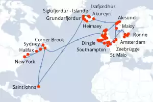 Singapur, Vereinigte Staaten von Amerika, Türkei, Australien, Arabische Emirate, Saudi-Arabien, Vietnam, China, Frankreich, Kroatien, Indonesien, Mexiko, Ägypten, Japan, Portugal, Vanuatu, Italien, Ma Reiseroute : Miami, Grand Cayman, Cartagena, Puerto Quetzal, Acapulco, Manzanillo, San Diego, Los Angeles, Kahului, Nawiliwili, Honolulu, Hilo, Bora Bora, Raiatea, Moorea, Papeete, Huahine, Rarotonga, Alofi, Vava'u, Savusavu, Port Denarau, Fidschi, Lautoka, Port Vila, Lifou, Noumea, Sydney, Mooloolaba, Whitsunday Insel, Cairns, Darwin, Komodo, Lombok, Benoa, Semarang, Jakarta, Singapur, Ko Samui, Sihanoukville, Laem Chabang, Ho Chi Minh-Stadt, Hue, Hanoi, Hong Kong, Shanghai, Incheon, Nagasaki, Hiroshima, Kochi, Kobe, Shimizu, Yokohama, Miyakojima, Taipeh, Kaoshiung, Manille, Coron, Puerto Princesa, Kota Kinbalu, Singapur, Hafen Klang, Penang, Phuket, Galle, Male, Mumbai, Dubai, Abu Dhabi, Doha, Dubai, Salaalah, Jedda, Safaga, Aqaba, Sharm El Sheikh, Sokhna, Limassol, Rhodos, Ephesus, Piräus - Athen, Igoumenitsa, Bari, Zadar, Koper, Ravenna, Split, Dubrovnik, Valletta, Messina, Sorrento, Civitavecchia - Rom, Florenz/Pisa (Livorno), Monaco Monte-Carlo, Barcelona, Palma de Mallorca, Motril, Sevilla, Gibraltar, Lissabon, Porto, La Coruña, Bilbao, Biarritz, Bordeaux, La Rochelle, St. Helier, Honfleur, Southampton