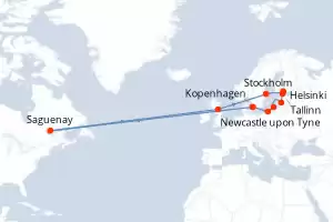 Reiseroute : Kopenhagen, Saguenay, Newcastle upon Tyne, Stockholm, Helsinki, Tallinn, Riga, Klaipeda, Danzig, Kopenhagen