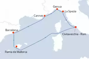 Reiseroute : Civitavecchia - Rom, Palma de Mallorca, Barcelona, Cannes, Genua, La Spezia, Civitavecchia - Rom
