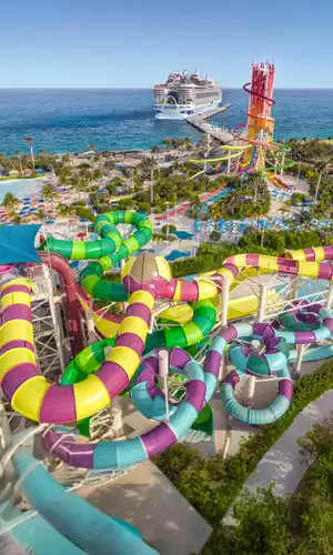 Die Bahamas sind berühmt für ihre langen Sandstrände und das kristallklare Wasser. Viele der Bahamas-Kreuzfahrten, die vom Hafen von Miami aus starten, legen auf der Privatinsel von Royal Caribbean, Perfect Day at CocoCay, an. Es ist ein Reiseziel, das so konzipiert ist, dass es jedem gefällt, von Familien bis hin zu Paaren, die Ruhe suchen. Auf dem Programm stehen der Thrill Waterpark mit der höchsten Wasserrutsche Nordamerikas, die Möglichkeit, private Hütten zu mieten, faszinierende Schnorchel-Erlebnisse und die Chance, die Insel mit einer Zipline oder einem Heißluftballon zu überfliegen, was einen atemberaubenden Panoramablick bietet.