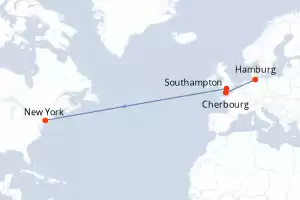 Reiseroute : Hamburg, Cherbourg, Southampton, New York