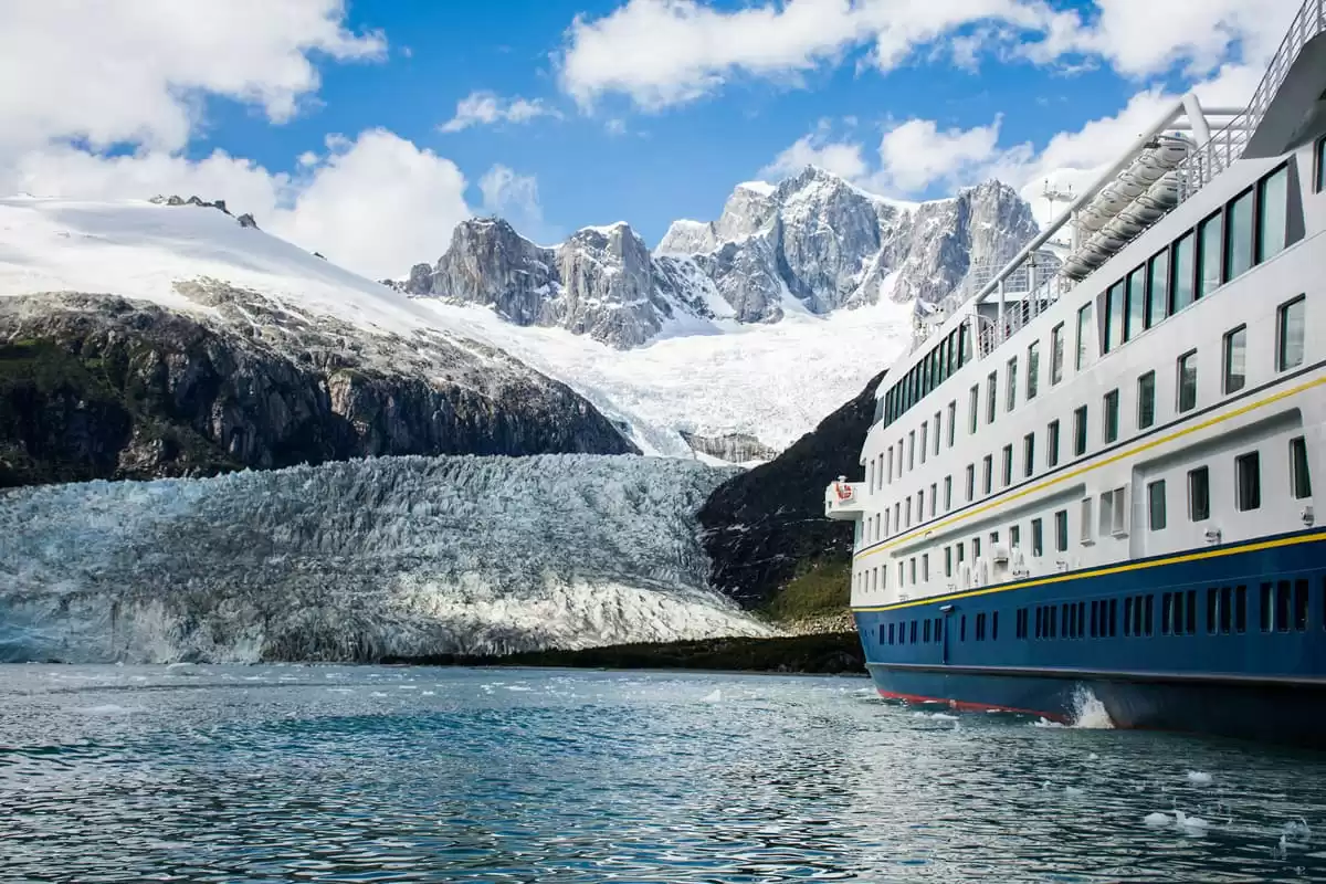 Der Pia-Gletscher im Beagle-Kanal in Patagonien ist ein beeindruckendes Naturspektakel. Der Gletscher, der mit dem Boot erreichbar ist, bietet einen herrlichen Blick auf seine blauen Berge und seine Gletscherschluchten. Die umliegenden Berge und Wälder bieten eine wunderbare Kulisse. Bei Ausflügen in die Umgebung können Sie die einheimische Tierwelt und die herrliche Landschaft der Patagonien entdecken.