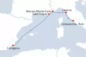 Reiseroute : Cartagena, Saint Tropez, Monaco Monte-Carlo, Livorno, Civitavecchia - Rom